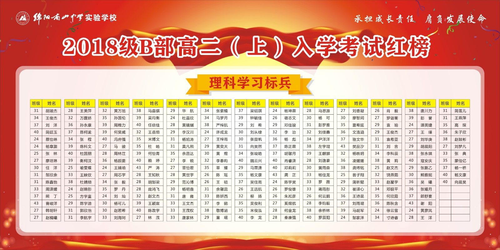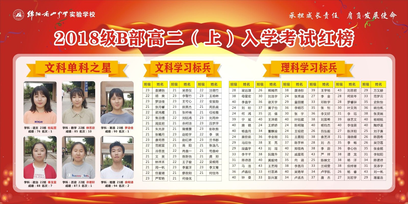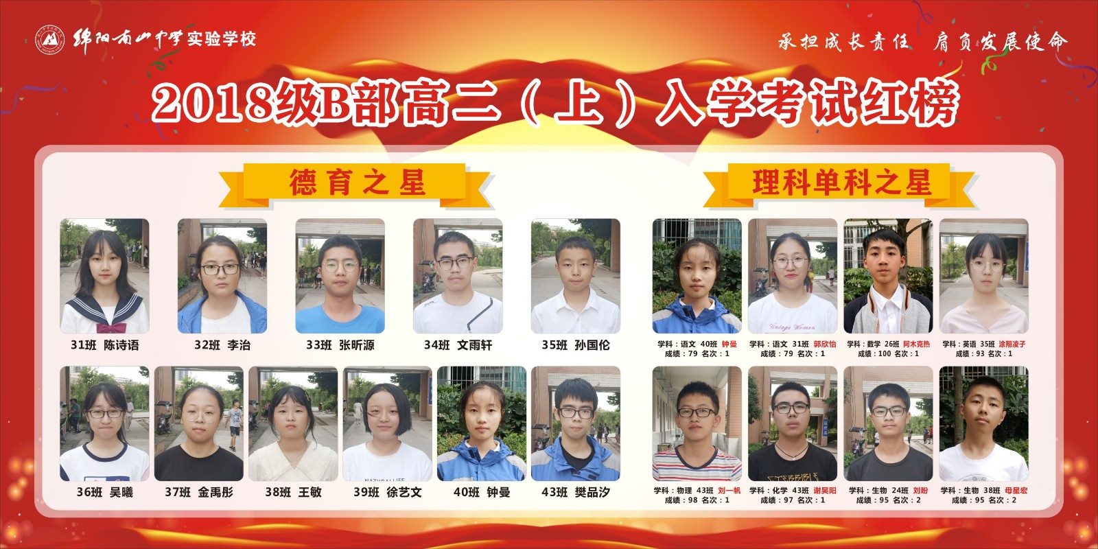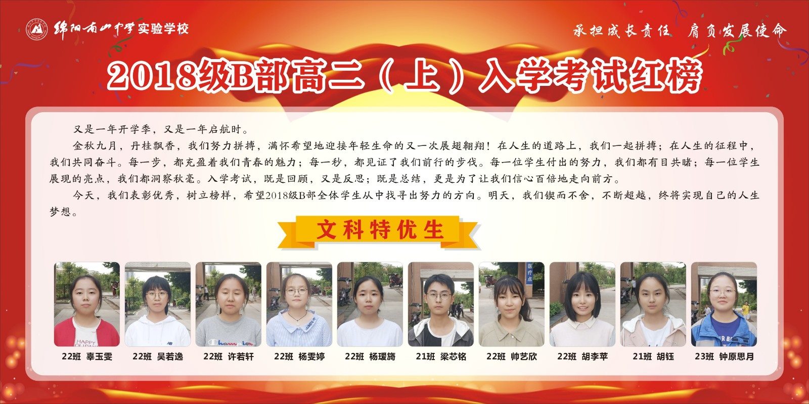 高2018級B部高二上期入學(xué)考試表彰