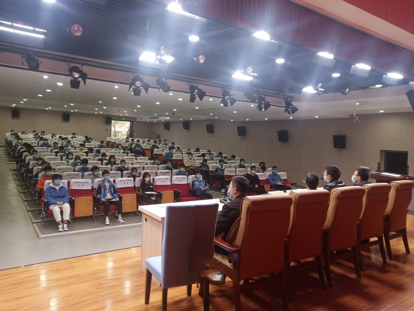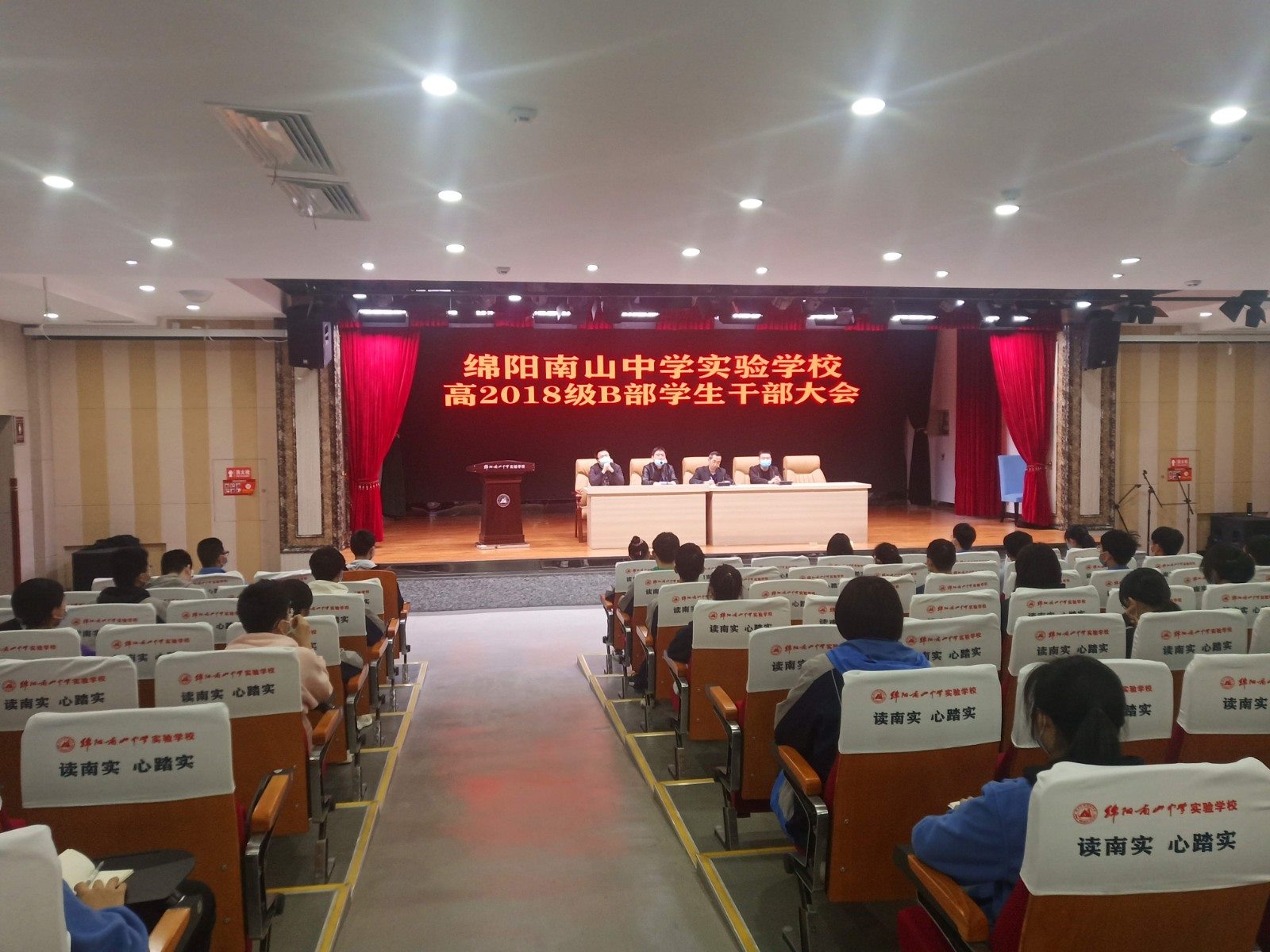為了加強(qiáng)年級(jí)管理,進(jìn)一步落實(shí)管理細(xì)則,幫助各班建設(shè)良好的班風(fēng)、學(xué)風(fēng),高2018級(jí)B部年級(jí)組于周四(4月23日)晚利用第一、二節(jié)在第二學(xué)術(shù)廳召開(kāi)了各班班委干部培訓(xùn)會(huì)。會(huì)議由年級(jí)政教主任陳汛老師主持,高2018級(jí)B部各班主要班干部參加會(huì)議,年級(jí)組全體成員出席,年級(jí)第一責(zé)任人趙福生主任作重要講話(huà)。因防疫需要,同學(xué)們均佩戴口罩并間隔1米左右就坐。