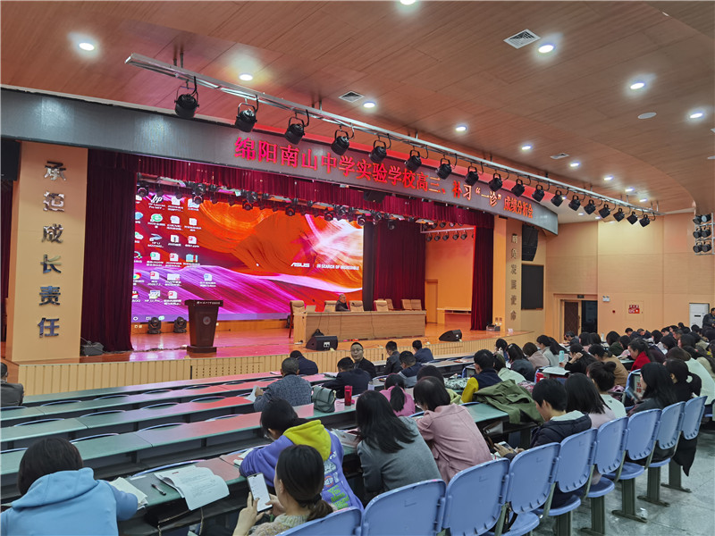 綿陽第一次診斷性考試已經(jīng)落下帷幕,為更好的總結(jié)一診考試情況,為后期的科學(xué)復(fù)習(xí)備考打下堅(jiān)實(shí)的基礎(chǔ),2020年11月9日18點(diǎn)50分,綿陽南山中學(xué)實(shí)驗(yàn)學(xué)校在第一學(xué)術(shù)廳召開了高三、補(bǔ)習(xí)年級(jí)“一診”成績分析會(huì),會(huì)議由高三、補(bǔ)習(xí)年級(jí)共同組織,針對(duì)考試情況,譚世貴校長發(fā)表重要講話。首先,譚校長從數(shù)據(jù)(A,B優(yōu)率等)方面對(duì)本次考試做了詳細(xì)的剖析,譚校長強(qiáng)調(diào) ,老師們一定要根據(jù)歷年經(jīng)驗(yàn),調(diào)整班級(jí)管理和教學(xué)方案,科學(xué)規(guī)劃,狠抓落實(shí),在注重整體發(fā)展的同時(shí),注意狠抓踩線生,一定要保證“年級(jí)有方案,老師有方法”。