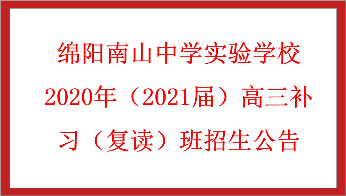 綿陽南山中學(xué)實驗學(xué)校2020年(2021屆)高三補習(xí)(復(fù)讀)班招生公告