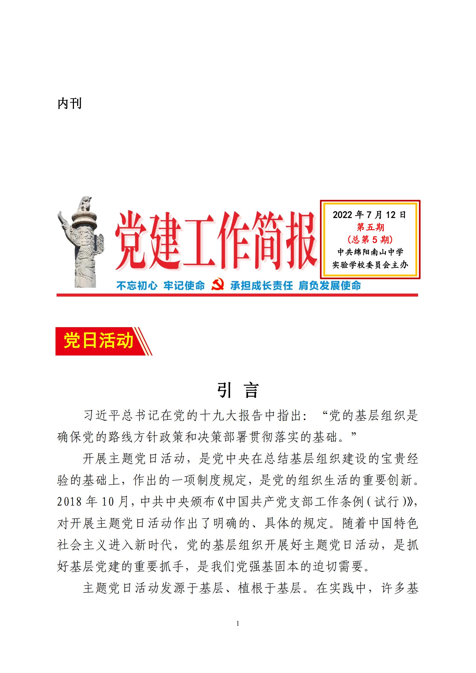 黨建工作簡報(bào) 第五期(總第5期)