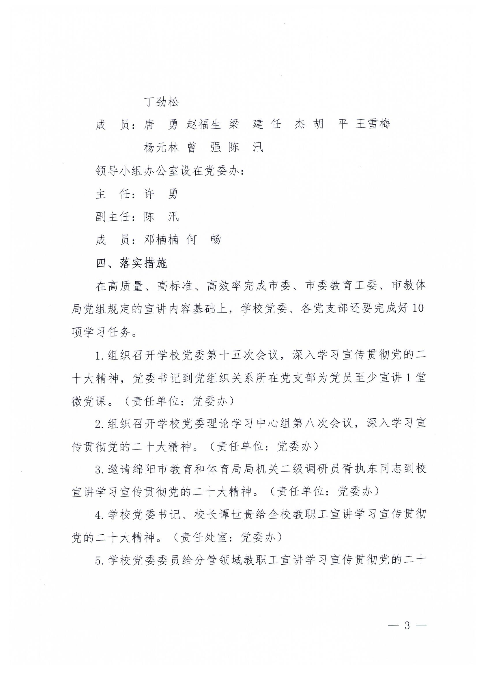 綿陽南山中學(xué)實(shí)驗(yàn)學(xué)校黨委專題研究討論學(xué)習(xí)貫徹 黨的二十大精神的實(shí)施方案