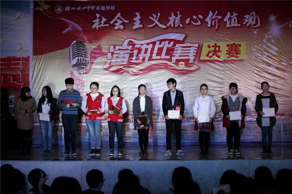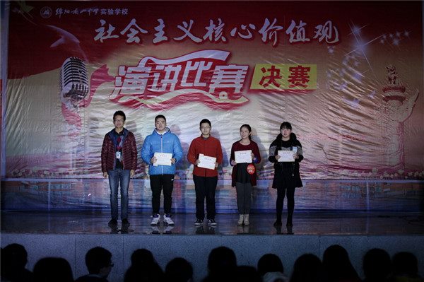 為更好地踐行“社會(huì)主義核心價(jià)值觀”,弘揚(yáng)中華傳統(tǒng)美德,推動(dòng)校園文化建設(shè),11月30日晚,我校“踐行社會(huì)主義核心價(jià)值觀”學(xué)生演講比賽在第一學(xué)術(shù)廳隆重舉行。全體行政、高一高二學(xué)生代表觀看了本次比賽。