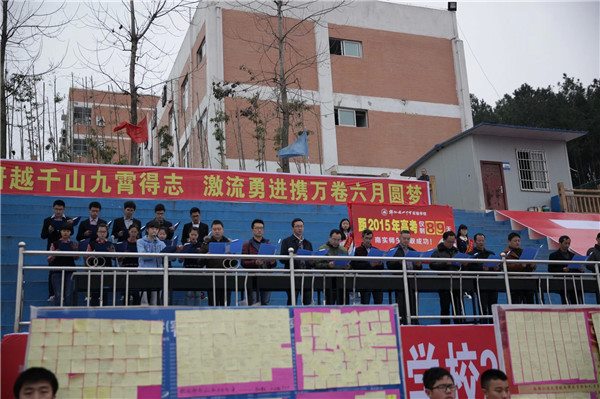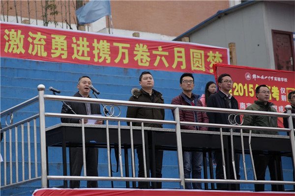 為加強高2015屆全體師生的凝聚力,鼓勵高三學(xué)子全力沖刺高考,3月10日在第一運動場隆重舉行高2015屆高考沖刺誓師大會?;舻瞧嫘iL及全校行政領(lǐng)導(dǎo)共同出席了本次大會。