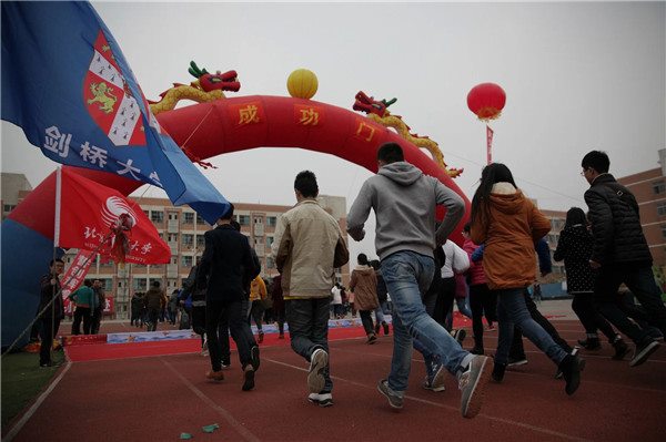 最后,在教師方陣的帶領(lǐng)下,伴隨著《邁向考場》的振奮音樂,全體同學(xué)以班級的形式接連沖向通往2015年高考大捷的“成功之門”。至此,本次高考沖刺誓師大會圓滿落幕。