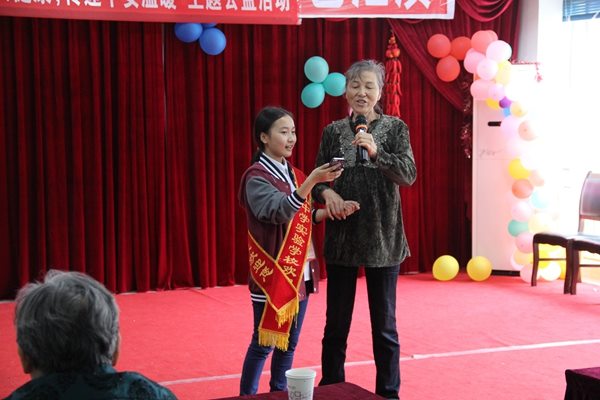 總的來說此次活動培養(yǎng)了同學(xué)們的社會公德意識,為繼承和發(fā)揚我國敬老愛老的傳統(tǒng)美德貢獻了力量。