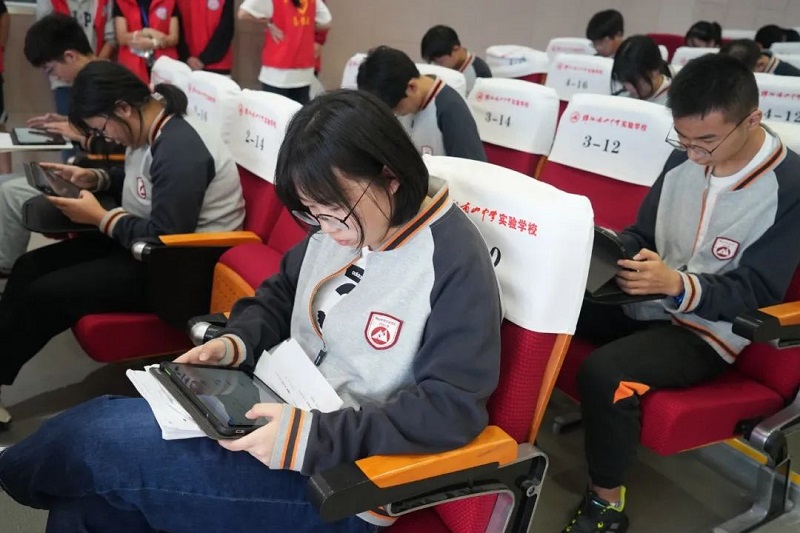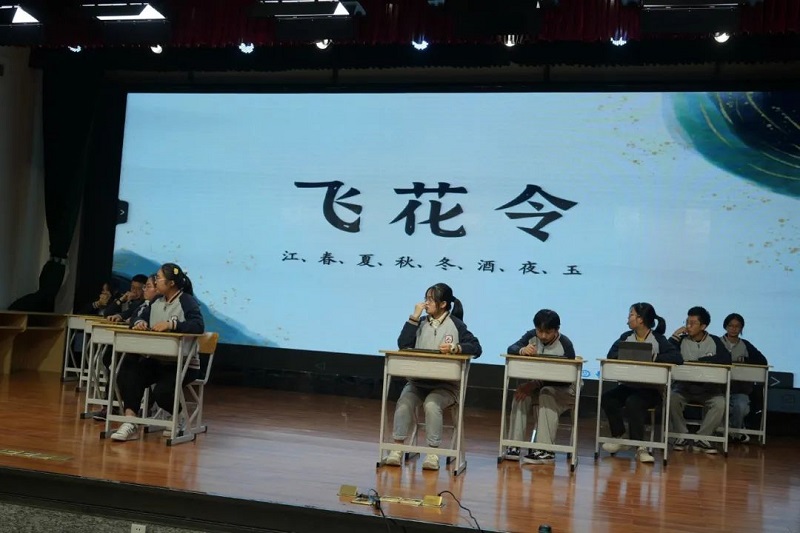 秋期如約不須催,雨腳風(fēng)聲兩快哉。9月25日下午3:00,綿陽南山中學(xué)實(shí)驗(yàn)學(xué)?!笆耧L(fēng)詩韻”詩詞大會在第二學(xué)術(shù)廳拉開帷幕,校團(tuán)委副書記李情老師,校團(tuán)委副書記劉璐老師,校團(tuán)委副書記吳玖林老師,校團(tuán)委副書記廖雨老師出席了本次活動。 中國是詩的國度,綿州大地詩意激蕩。南實(shí)的“風(fēng)花雪月”,也無一不成詩。劉璐老師對同學(xué)們寄語,“少年心事當(dāng)拏云”,我們要傳承中華傳統(tǒng)文化,在詩詞中汲取古人的智慧與精神。無嘩戰(zhàn)士銜枚勇,下筆春蠶食葉聲。比賽共分為三輪,大浪淘沙、個人追逐與狀元爭奪,選手們通過平板進(jìn)行在線答題。